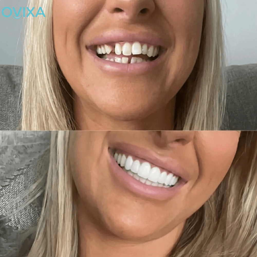 OvixaSmile Elite™ easily snap over your existing smile, giving you an instantly refreshed and confident look. Designed to enhance your appearance in seconds, they’re a simple way to elevate your everyday style.
